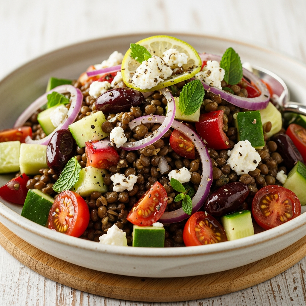 Ensalada Mediterránea de Lentejas con Vegetales Frescos y Aderezo de Hierbas