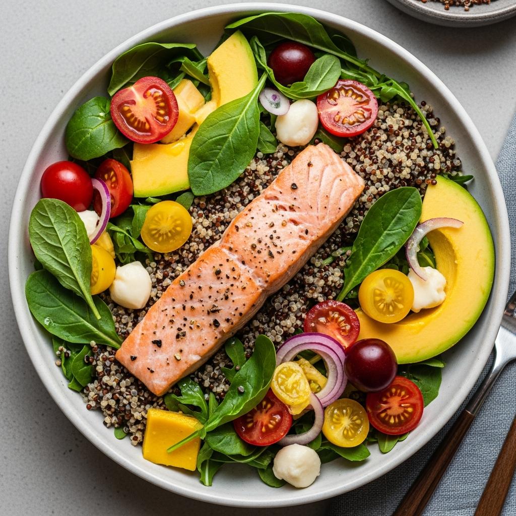Ensalada Mediterránea de Salmón y Quinoa para el Cerebro