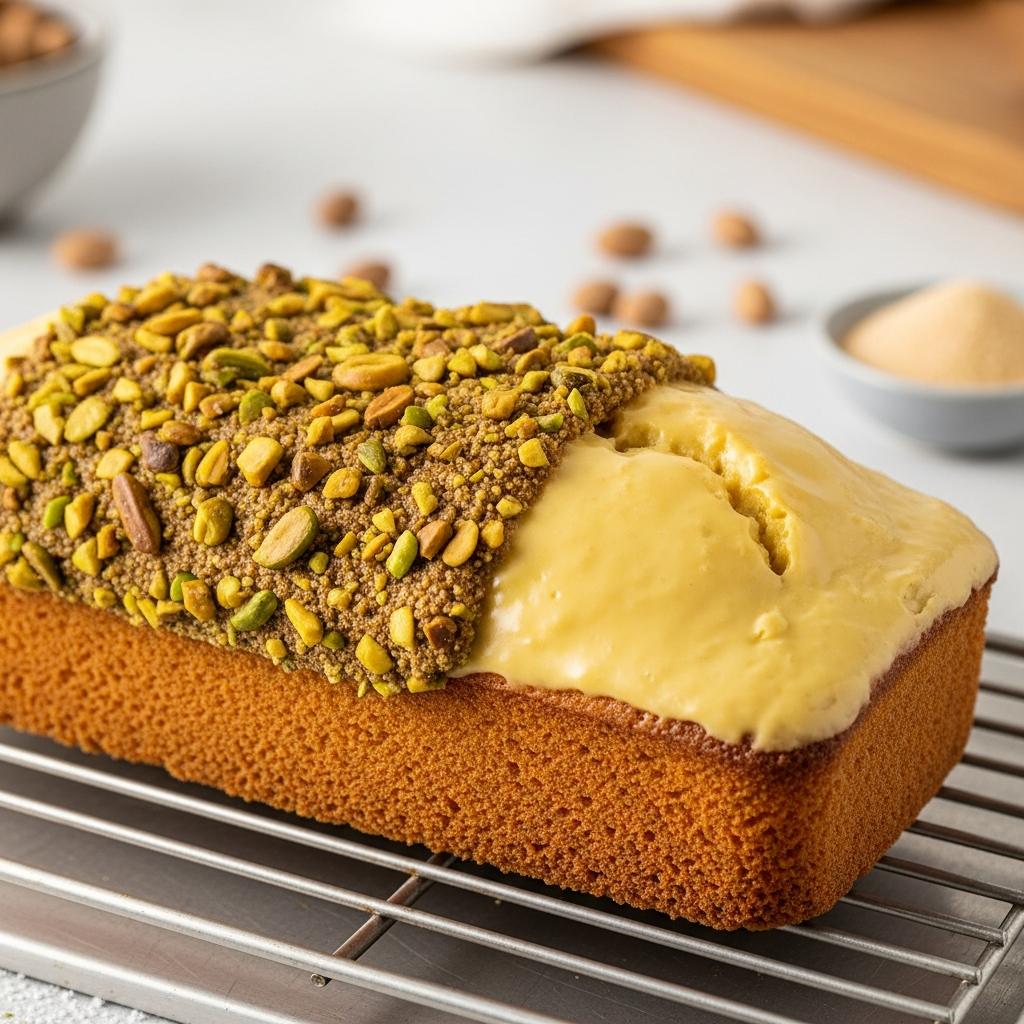 Imagina la ternura de un bizcocho casero, con ese sabor a vainilla que nos transporta a la infancia, y ahora añadele una capa dorada y crujiente, repleta del sabor y el color vibrante del pistacho. No es solo un postre; es una experiencia que equilibra la dulzura tradicional con una textura y un contraste de sabor inesperados. Es el equilibrio perfecto entre lo familiar y lo emocionante.