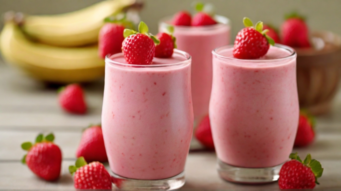 Batido de plátano y fresa. ¡Es una combinación deliciosa y refrescante!
