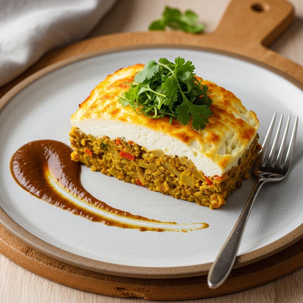 Pastel de Lentejas y Verduras al Curry con Mascarpone